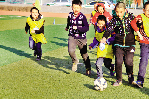 3月12日,原平農(nóng)校足球場(chǎng)內(nèi),小球迷正在進(jìn)行對(duì)抗訓(xùn)練。從小培養(yǎng)兒童熱愛運(yùn)動(dòng),熱愛足球,已成為時(shí)下一種教育理念。周末節(jié)假日兒童不再上各種培訓(xùn)班,踢足球,增體質(zhì),堅(jiān)定自信心,已成為一種習(xí)慣:我運(yùn)動(dòng),我健康,我是最棒的!(吉建平 攝)