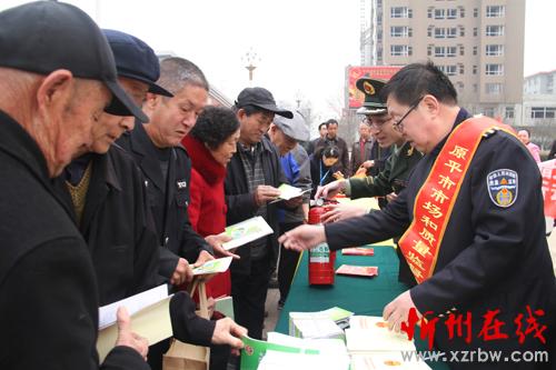 3月15日,原平市開展了“3.15國際消費者權(quán)益日”宣傳咨詢服務(wù)活動?!岸拘袆印遍_展以來,該市組織消防、藥品等有關(guān)部門工作人員開展以“新消費 我做主”為主題多種形式的宣傳咨詢服務(wù),設(shè)立了咨詢臺、打擊非法集資等展示臺,接受群眾咨詢,并發(fā)放各種宣傳材料十萬余份,提高消費者法制法規(guī)和知假辯假的能力。圖為消防工作人員向消費者講解如何識別偽劣滅火器。(褚震 攝)