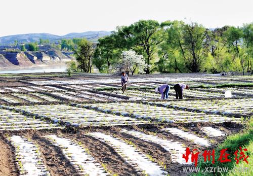 谷雨前后,點瓜種豆。4 月24 日,河曲縣文筆鎮(zhèn)唐家會村一戶村民正在剛出苗的玉米地里套種豆角。該村充分利用緊鄰黃河、灌溉便利的有利條件,通過實行地膜全覆蓋和套種等方式最大限度地提高土地收益。這一帶種植的玉米、豆角、大蒜等多種瓜菜類經(jīng)濟作物,尤其大蒜在周邊很有名氣,成為城區(qū)及周邊瓜菜等農(nóng)產(chǎn)品的重要供應地之一。(鄔耿杰 攝)