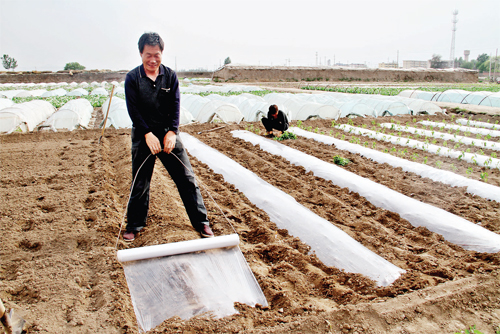 原平市新原鄉(xiāng)解放街村村民在收獲菠菜后復(fù)播栽植尖椒菜苗。該市利用城郊地理優(yōu)勢,大力發(fā)展設(shè)施蔬菜產(chǎn)業(yè),突出“綠色、安全、特色”種植,豐富了市民的菜籃子,也增加了農(nóng)民收入。(褚震 攝)