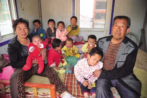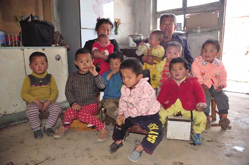 原來,張滿亮的妻子在附近的礦山企業(yè)打工當(dāng)廚師,在回家的途中遇到一個(gè)被父母遺棄路邊的殘疾棄嬰,在那里哇哇大哭,她左思右想不忍心,就將殘疾棄嬰抱回家撫養(yǎng),丈夫張滿亮不僅不嫌棄,還搭手幫忙。從此開始,得知張滿亮夫婦是樂做善事熱心人的縣民政局和周邊村民,就接連不斷地將殘疾棄嬰給張滿亮夫婦送來,他倆二話不說全部接納收養(yǎng),6年來一共接納了9名。隨著殘疾兒童的增多,自家房屋缺少?zèng)]法養(yǎng),村集體就將舊學(xué)校的幾間房屋騰出來讓他倆占用?,F(xiàn)在9名棄嬰,最大的五六歲,最小的才五個(gè)月,均有殘疾,有的兔嘴、缺耳、缺胳膊、雙目失明,有的患肌肉萎縮、肺腫大、心臟病、疝氣。張滿亮夫婦以父母般的愛心撫養(yǎng)照料這些孩子,還給起了很好聽的名字:張?zhí)炖?、張?zhí)煊?、張?zhí)祜L(fēng)、張?zhí)煸?、張?zhí)觳拧執(zhí)鞂?、張?zhí)旎ā堺惢?、張彩花。他倆與二兒媳董艷紅精心照料著殘疾兒童的一日三餐和生活起居,穿衣喂飯,潑奶哺乳,擦屎倒尿,大哭小叫,不厭不煩,起早貪黑,周而復(fù)始,以人間大愛撫育著這些殘疾兒童健康的成長。