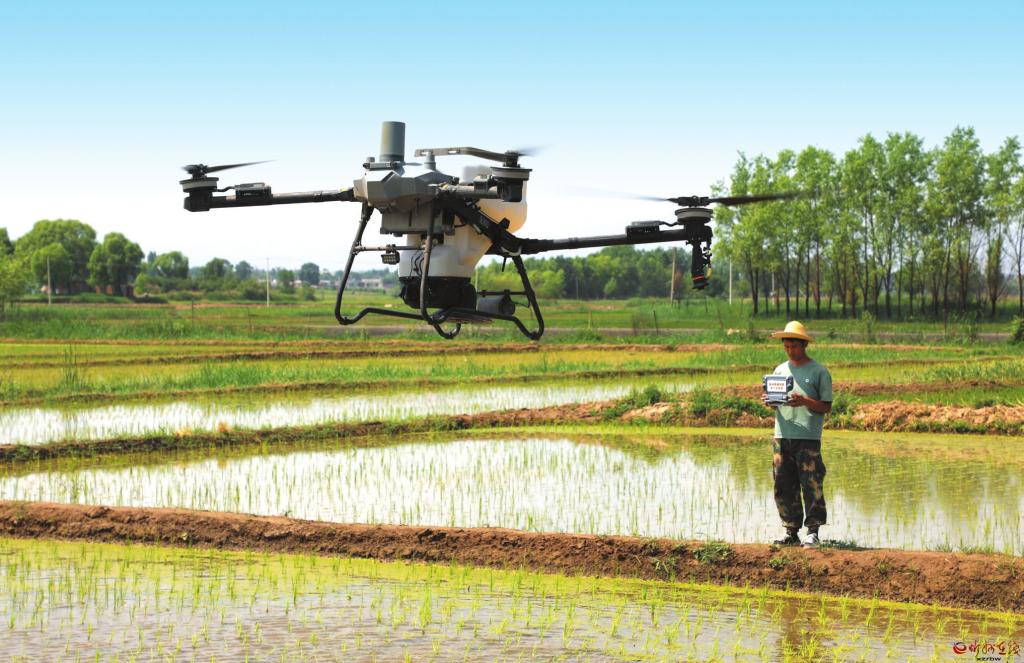 6月13日,原平市吉祥街道東營村,飛手操作植保無人機(jī)對水稻秧苗和蓮藕噴藥施肥。“三夏”時(shí)節(jié),原平市加大農(nóng)作物管護(hù)力度,調(diào)配植保無人機(jī)開展飛防作業(yè),組織農(nóng)技人員指導(dǎo)農(nóng)戶高效施肥、精準(zhǔn)噴藥,實(shí)現(xiàn)水稻科學(xué)管護(hù),為糧食穩(wěn)產(chǎn)高產(chǎn)筑牢基礎(chǔ)。(褚震攝)