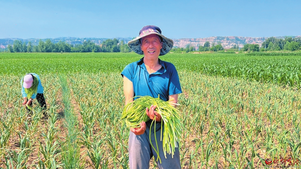 鄉(xiāng)村要振興,產(chǎn)業(yè)是關(guān)鍵支撐。眼下,正值河曲縣蒜薹成熟的時(shí)節(jié)。在西口鎮(zhèn)唐家會(huì)村的田間地頭,連片的蒜苗映入眼簾,一股濃濃的蒜香撲鼻而來(lái)。蒜農(nóng)們正俯身穿梭在蒜壟間,隨著手上一連串熟練的動(dòng)作,一根根新鮮嫩綠的蒜薹被快速抽出??粗种杏执钟珠L(zhǎng)的蒜薹,蒜農(nóng)們臉上洋溢著豐收的喜悅。蒜農(nóng)搶農(nóng)時(shí)、忙采收、話(huà)振興,小小紫皮蒜為鄉(xiāng)村發(fā)展注入了強(qiáng)勁活力。