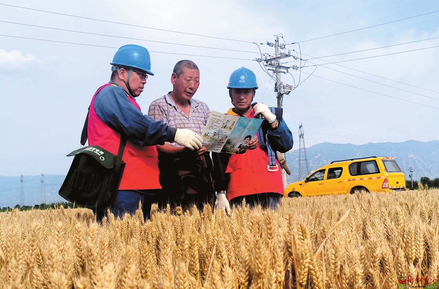 6月24日,在忻府區(qū)義井鄉(xiāng)北湖村小麥?zhǔn)痉短锢?,機(jī)聲隆隆,麥浪滾滾。一臺(tái)臺(tái)聯(lián)合收割機(jī)來回穿梭,時(shí)不時(shí)停下來裝卸金燦燦的麥粒。在這滾燙的豐收?qǐng)鼍爸?,一?duì)身著“紅馬甲”的電力巡線員格外醒目,他們行進(jìn)在田埂之上,身影在麥浪與驕陽(yáng)之間躍動(dòng),編織起一道無形的安全網(wǎng)。