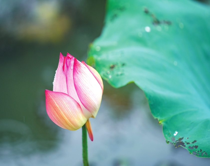 晨霧未散時,“綠云”先漫過了河岸——層層疊疊的荷葉浮在水面,像被風(fēng)吹過的綢緞,葉尖凝著的荷露,是天空落進(jìn)人間的碎鉆。粉白的荷從“綠云”里探出頭,半開的像未寫完的詩箋,盛放的似被陽光吻過的笑靨,連風(fēng)掠過時都輕了三分,怕驚碎這池溫柔。