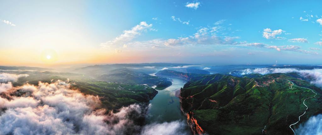 8月1日,被譽(yù)為“黃河入晉第一灣”的偏關(guān)老牛灣景區(qū)再現(xiàn)壯美日出云海奇觀。這里天藍(lán)水清,植被豐茂,?,F(xiàn)云海蒸騰、朝霞浸染的如畫景致,這醉人的美景,正是“綠水青山就是金山銀山”的生動(dòng)詮釋。(記者馮曉磊攝)