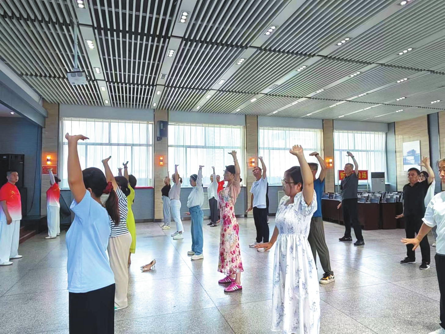 社會體育指導(dǎo)員走進市發(fā)改委開展全民健身志愿服務(wù)活動。