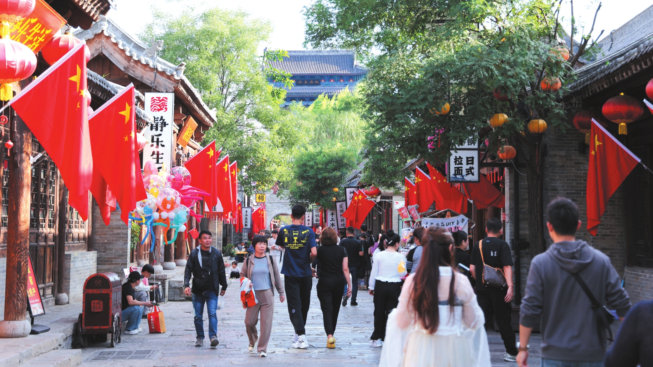 國慶假日期間,忻州古城處處國旗飄揚(yáng)。 本報記者 范 琛攝