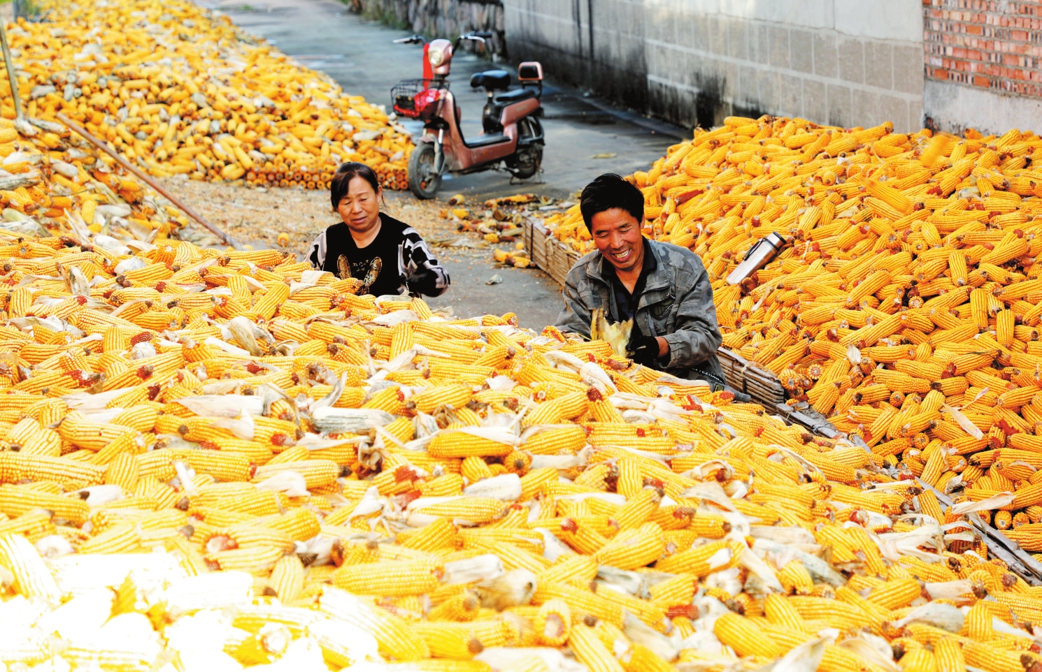 近日,原平市新原街道桃園村村民緊抓晴好天氣晾曬玉米,農家場院呈現(xiàn)出一派喜人的豐收景象。(