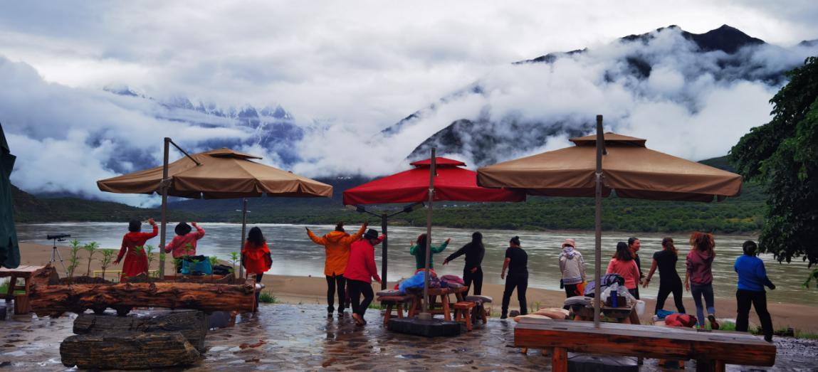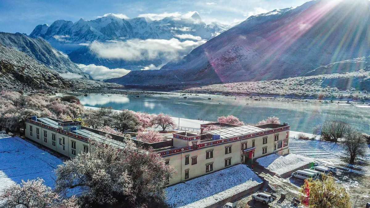 公尊德姆農(nóng)家樂(lè)位于林芝市米林縣派鎮(zhèn)雅魯藏布江大峽谷景區(qū),這里水連著山,山連著天,云霧沿著山坡緩緩傾瀉,仿佛為山川蒙上了一層白色面紗。