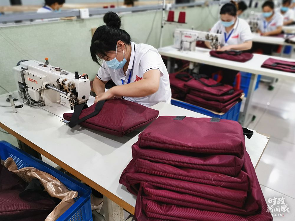 △扶貧車(chē)間的背包縫制生產(chǎn)線(總臺(tái)央視記者李曉周拍攝)