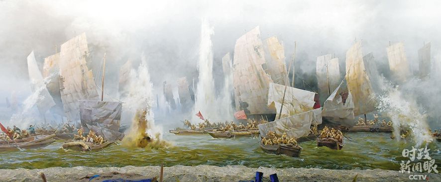 △陳列在紀(jì)念館里的渡江戰(zhàn)役主題壁畫(huà)