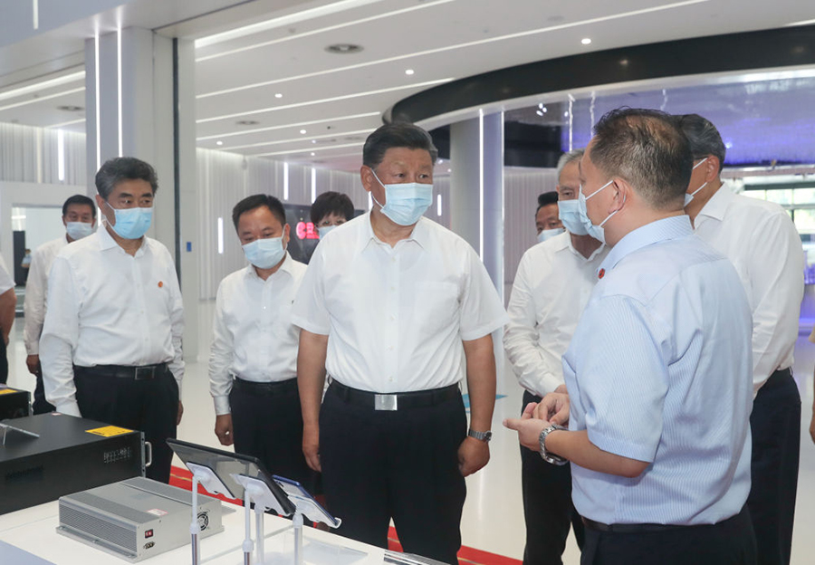 8月19日,習(xí)近平參觀安徽創(chuàng)新館,了解安徽省科技創(chuàng)新和新興產(chǎn)業(yè)發(fā)展情況。(新華社記者鞠鵬 攝)