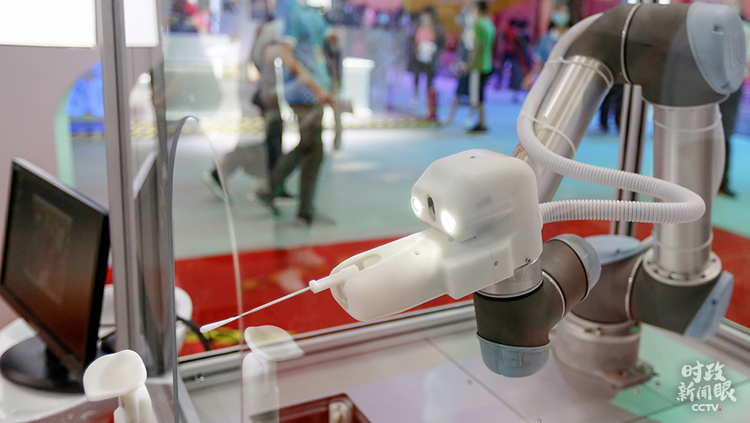 △在今年服貿會上亮相的咽拭子采樣機器人。