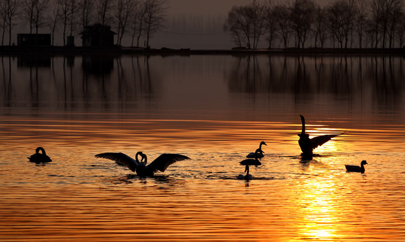 每年的10月下旬,經(jīng)過長(zhǎng)途遷飛的天鵝成群結(jié)隊(duì)來到圣天湖越冬,數(shù)量最多時(shí)達(dá)2萬只。資料圖