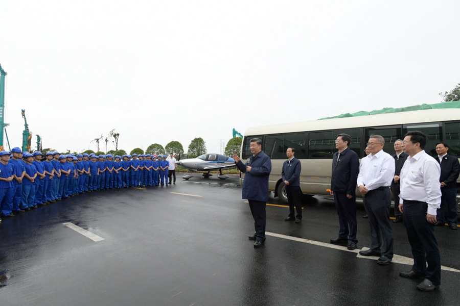 9月17日下午,習(xí)近平在長(zhǎng)沙市山河智能裝備股份有限公司生產(chǎn)車間,察看裝備制造流程,了解技術(shù)研發(fā)、生產(chǎn)制造情況。(新華社記者李學(xué)仁 攝)