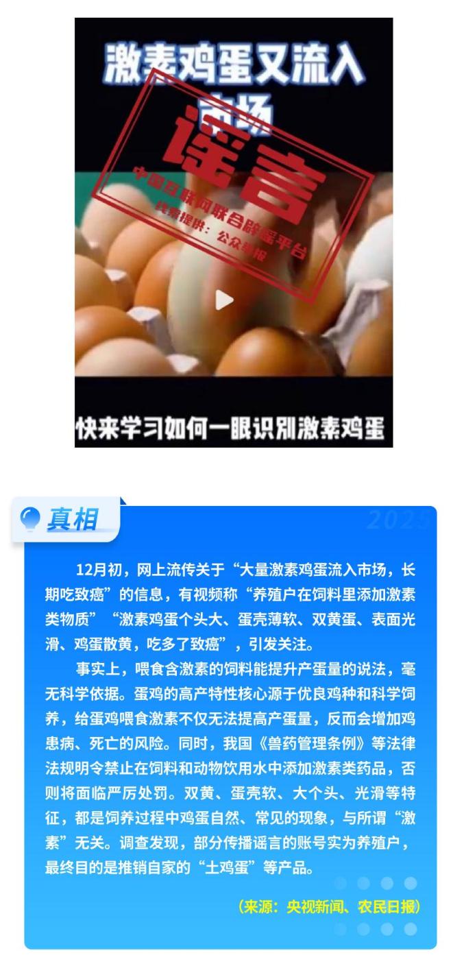 部分網(wǎng)民蹭炒民生話題制造焦慮。秋冬季流感高發(fā),期間流傳“奧司他韋、瑪巴洛沙韋出現(xiàn)耐藥”等不實(shí)傳言,干擾患者合理用藥;“‘液體口罩’一噴就能防流感”的說(shuō)法,更是夸大宣傳,其所謂“防護(hù)效果”未經(jīng)臨床驗(yàn)證,設(shè)計(jì)與真實(shí)人體情況相去甚遠(yuǎn)。而“激素蛋大量流入市場(chǎng)”等說(shuō)法毫無(wú)科學(xué)依據(jù),其背后是不良商家的推銷(xiāo)策略,加劇了公眾對(duì)食品安全的擔(dān)憂。
