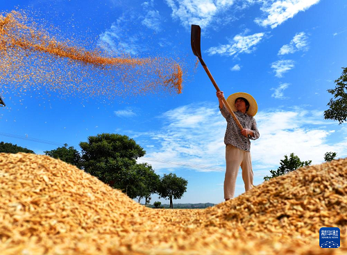 處暑時節(jié),各地農(nóng)民搶抓農(nóng)時勞作,田間地頭一派忙碌景象。