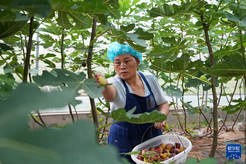 8月24日,在新泰市龍廷鎮(zhèn),果農(nóng)在采摘無(wú)花果。(新華社記者 徐速繪 攝)
