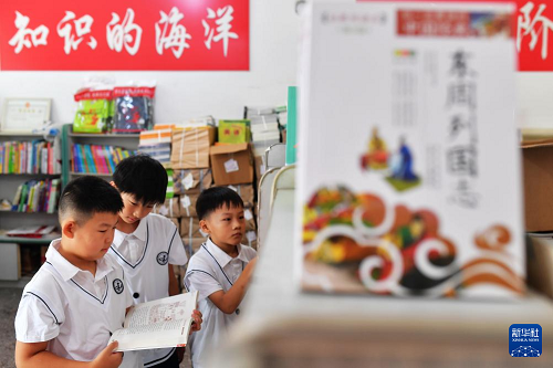 8月25日,山東省青島市城陽區(qū)夏莊小學(xué)學(xué)生在選購學(xué)習(xí)輔助書籍。(新華社發(fā) 王海濱 攝)