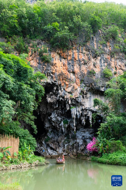 8月25日,游客乘船進入云南省廣南縣壩美村。(新華社記者 高詠薇 攝)