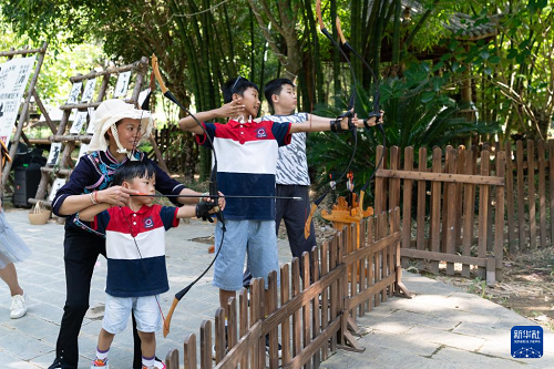 8月24日,游客在云南省廣南縣壩美村體驗射箭。(新華社記者 高詠薇 攝)