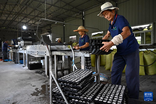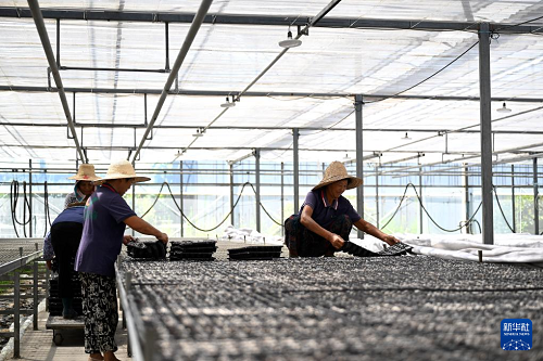 8月26日,工作人員在和縣綠緣溫室科技有限公司培育蔬菜秧苗。(新華社記者 黃博涵 攝)