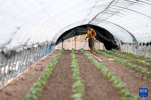 8月26日,工作人員在和縣綠緣溫室科技有限公司管護(hù)辣椒秧苗。(新華社記者 黃博涵 攝)