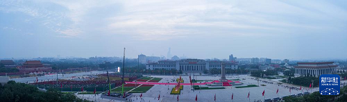 9月3日清晨拍攝的天安門廣場(chǎng)。(新華社記者 朱崢 攝)