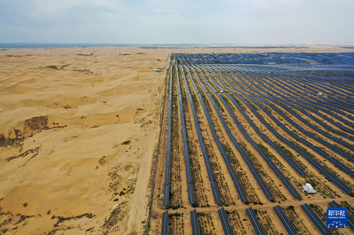 內(nèi)蒙古鄂爾多斯市達(dá)拉特旗境內(nèi)的庫布其沙漠里,一塊塊藍(lán)色光伏板鱗次櫛比、鋪陳排開,將沙海變成綠能涌動的“藍(lán)?!薄=陙?,達(dá)拉特旗依托光伏基地建設(shè),推廣應(yīng)用“光伏治沙”模式,實(shí)現(xiàn)光伏板上發(fā)綠電,板下治理沙漠生態(tài),既帶動新能源產(chǎn)業(yè)發(fā)展,也促進(jìn)庫布其沙漠治理。