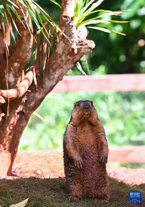 這是9月14日在海南熱帶野生動(dòng)植物園拍攝的旱獺。(新華社記者 楊冠宇 攝)