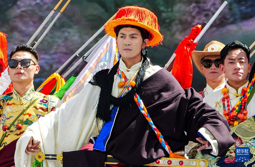 這是9月15日拍攝的開幕式上的傳統(tǒng)服飾秀。(新華社記者 格桑朗杰 攝)