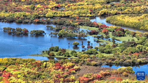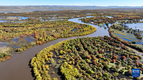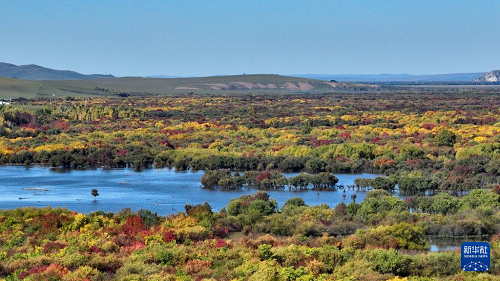 時下,內蒙古額爾古納濕地迎來秋日盛景,多彩的灌木叢點綴其間,蜿蜒的河流如藍絲帶般靜靜流淌,宛若大自然打翻的調色盤。
