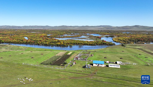 這是9月15日在內蒙古呼倫貝爾市額爾古納市拍攝的濕地風光(無人機照片)。(新華社記者 貝赫 攝)