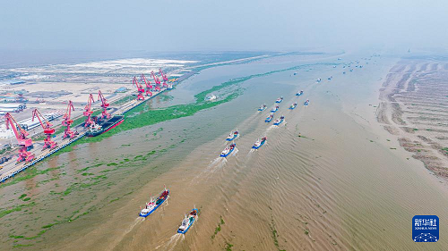 9月16日,在江蘇省鹽城市射陽縣,近千艘漁船起航展開捕撈作業(yè)(無人機照片)。(新華社發(fā) 彭嶺 攝)