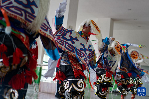 9月9日,在拉薩市第二中等職業(yè)技術(shù)學校,學生們在練習藏戲。(新華社記者 張笑宇 攝)