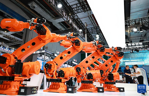 這是展覽現(xiàn)場展示的一組大型工業(yè)機器人產(chǎn)品(9月23日攝)。(新華社記者 方喆 攝)