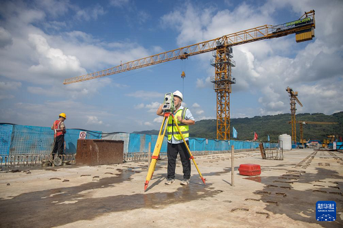 9月24日,工人在渝萬(wàn)高鐵五步河雙線特大橋建設(shè)現(xiàn)場(chǎng)施工作業(yè)。(新華社記者 唐奕 攝)