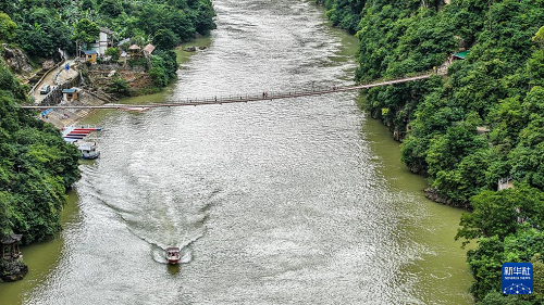 游客乘船游覽花江大峽谷景區(qū)(9月27日攝,無人機(jī)照片)。(新華社記者 陶亮 攝) 秋日時(shí)節(jié),貴州省安順市關(guān)嶺布依族苗族自治縣花江大峽谷景區(qū)風(fēng)景秀美,巖壁、峽谷、河流構(gòu)成一幅壯麗的畫卷。 (責(zé)任編輯:蔡文斌) |