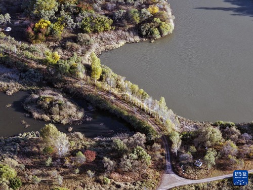這是10月7日拍攝的哈爾濱太陽(yáng)島國(guó)家濕地公園景色(無人機(jī)照片)。(新華社記者 王松 攝)