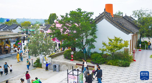 10月7日,游客在河南省洛陽市孟津區(qū)朝陽鎮(zhèn)衛(wèi)坡村的魏坡新序項目休閑游玩。(新華社發(fā) 黃政偉 攝)