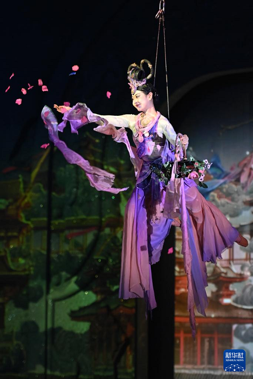 10月12日,演員在《樂動(dòng)敦煌》中表演。(新華社記者 范培珅 攝)