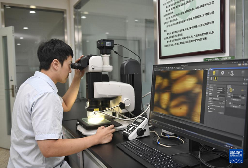 10月15日,在中儲糧成都儲藏研究院有限公司,科研人員進(jìn)行蟲害防治相關(guān)試驗。(新華社記者 劉坤 攝)