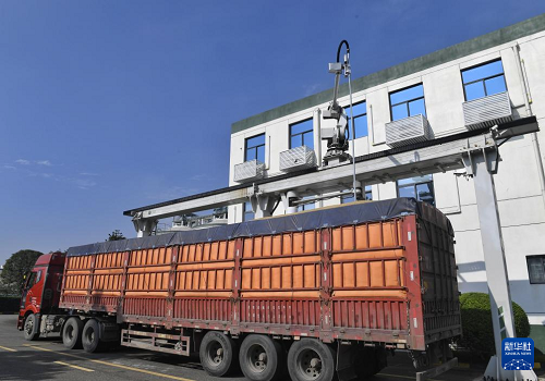 10月15日,在中儲糧成都青白江倉儲有限責(zé)任公司,智能扦檢平臺在對剛運來的糧食進(jìn)行隨機(jī)扦取樣品操作。(新華社記者 劉坤 攝)