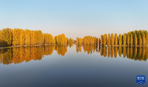 初冬時節(jié),在河北省邢臺市隆堯縣亦城村泜河沿岸,樹葉金黃,與水面、河岸相映襯,勾勒出一幅美麗和諧的自然畫卷。