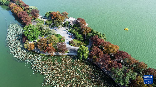 11月10日拍攝的南京玄武湖公園初冬景色(無人機(jī)照片)。(新華社發(fā) 孫忠南 攝)