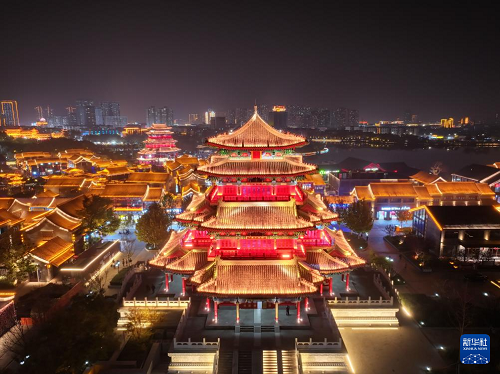 京杭大運河滄州段全長216公里,南北貫穿滄州市域,流經(jīng)吳橋、東光、南皮等8個縣市區(qū)。近年來滄州市統(tǒng)籌做好保護(hù)、傳承、利用文章,扎實推進(jìn)大運河文化帶建設(shè),促進(jìn)文旅產(chǎn)業(yè)融合發(fā)展。夜幕下,京杭大運河滄州段沿線眾多建筑流光溢彩,千年運河與城市風(fēng)貌在夜色中完美交融。