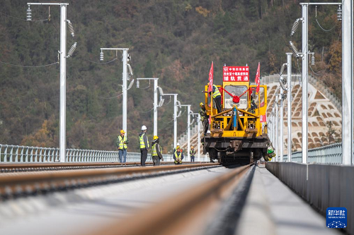 11月27日,在湖北十堰神定河特大橋上,西安至十堰高速鐵路(簡稱“西十高鐵”)全線最后一對長鋼軌鋪設落地,標志著西十高鐵全線鋪軌工程順利完工,為后續(xù)聯(lián)調聯(lián)試奠定基礎。