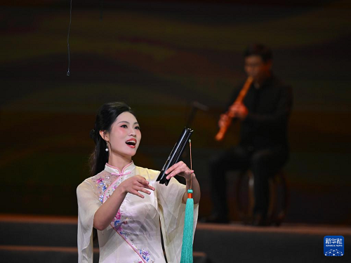 12月10日,南音社團(tuán)代表在“南音薪傳 四海弦歌”專(zhuān)場(chǎng)演出上演唱《遠(yuǎn)望鄉(xiāng)里》。(新華社記者 姜克紅 攝)