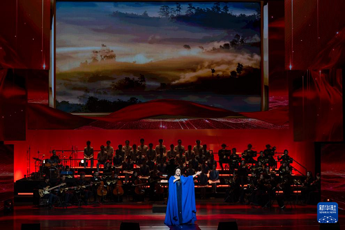 12月16日,在北京二七劇場舉辦的“中國夢·勞動美”2026新年音樂會上,鄭詠演唱《我愛你,中國》。(新華社記者 才揚 攝)